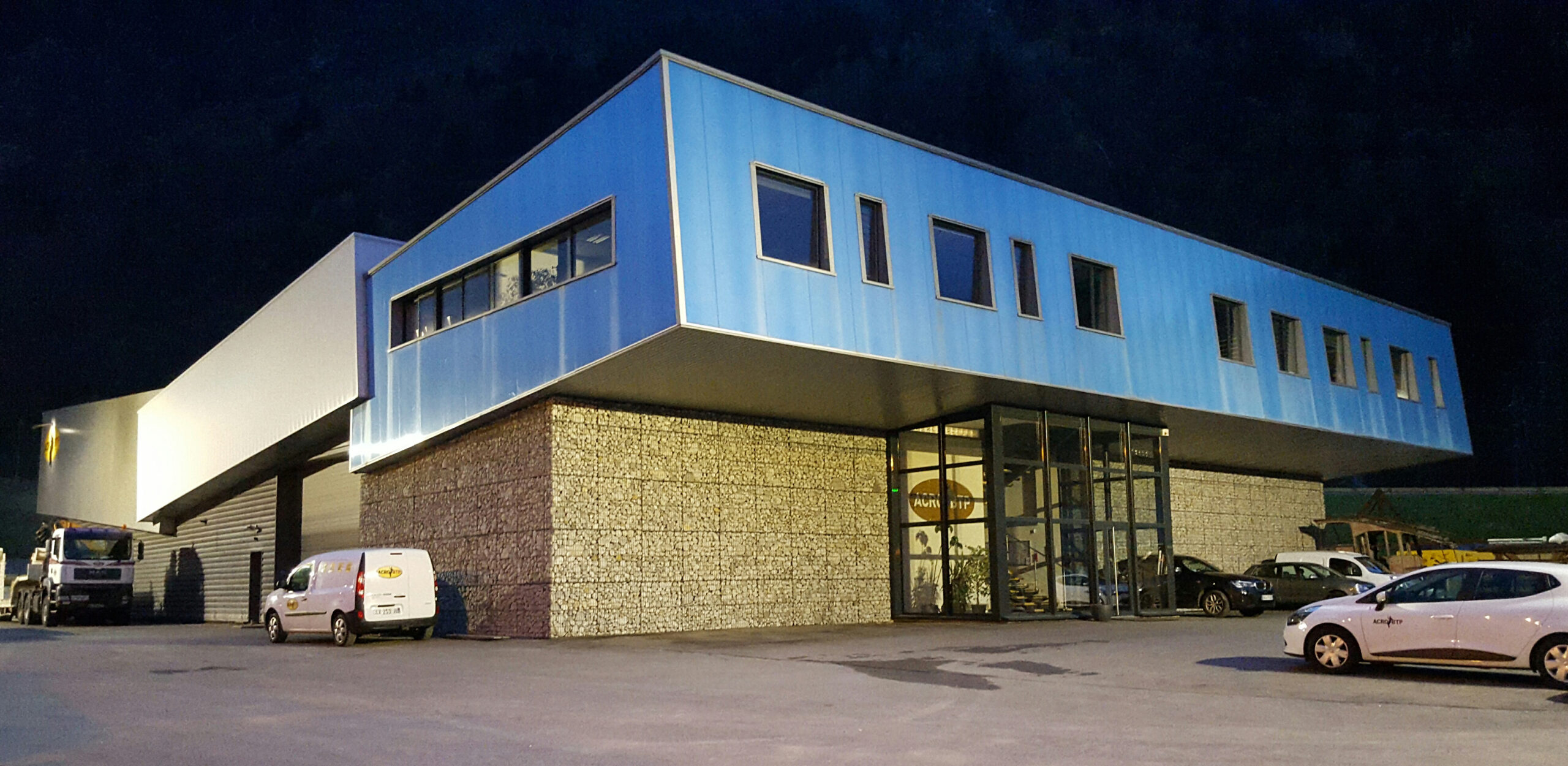 Le projet associe des matériaux pérennes et cohérents avec la vocation du lieu : gabions pour la robustesse et l’intégration, métal pour la précision, la durabilité et la maintenance. L’écriture générale privilégie la performance d’usage : accès simples, volumes lisibles, façade structurée, et une image d’entreprise renforcée par une architecture maîtrisée.