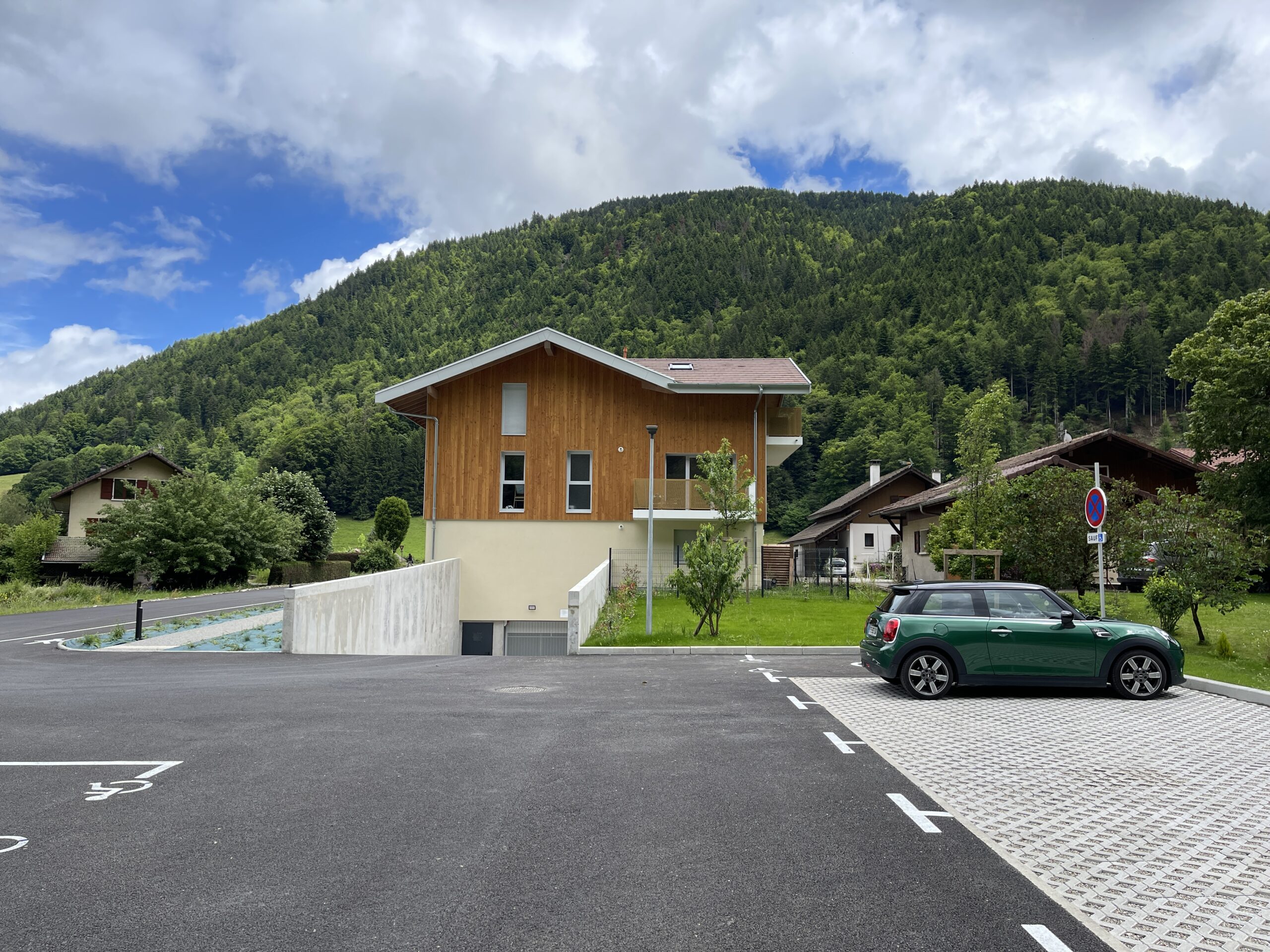 Ce projet de logements collectifs est situé à Thônes, en Haute-Savoie (74), au cœur d’un environnement naturel marqué par les reliefs alpins et un tissu résidentiel à dominante pavillonnaire. Conçu par une l’agence d’architecture DESSEIN ARCHITECTES en Haute-Savoie, l’ensemble s’inscrit dans une démarche d’architecture résidentielle contemporaine, attentive à l’intégration paysagère et au contexte montagnard.